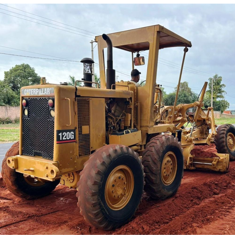 A motoniveladora Caterpillar 120G é um equipamento clássico de terraplenagem usado principalmente para nivelamento de solo, construção de estradas, manutenção de vias e acabamento de superfície. Ela possui cerca de 125 hp de potência e peso operacional aproximado de 11–12 toneladas, dependendo da configuração.